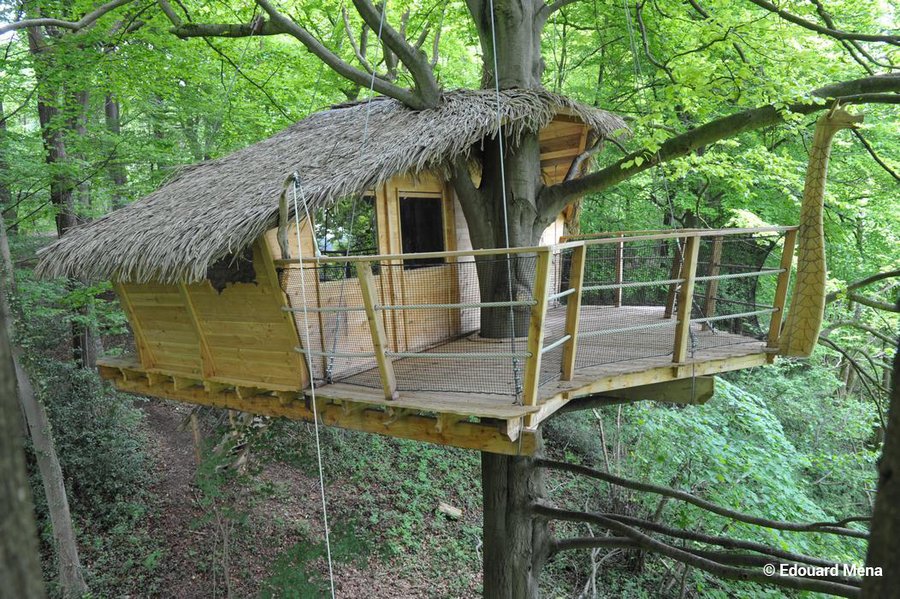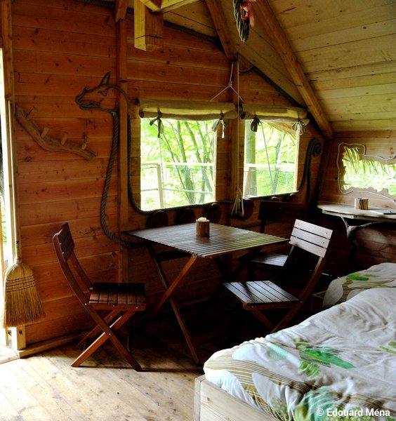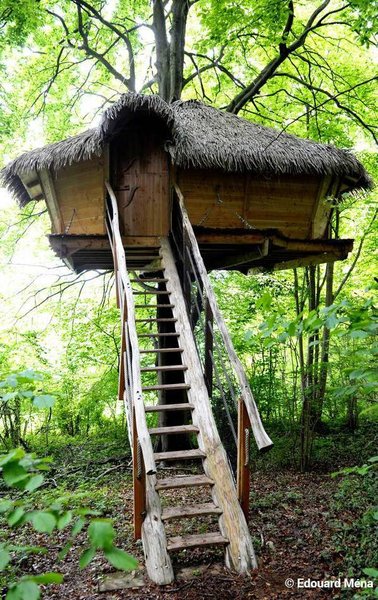 Perched 8m high above the ground, la Cabane du "Grand Hêtre" was the first cabin built in the Fontaine-Chatel's trees. T...