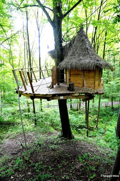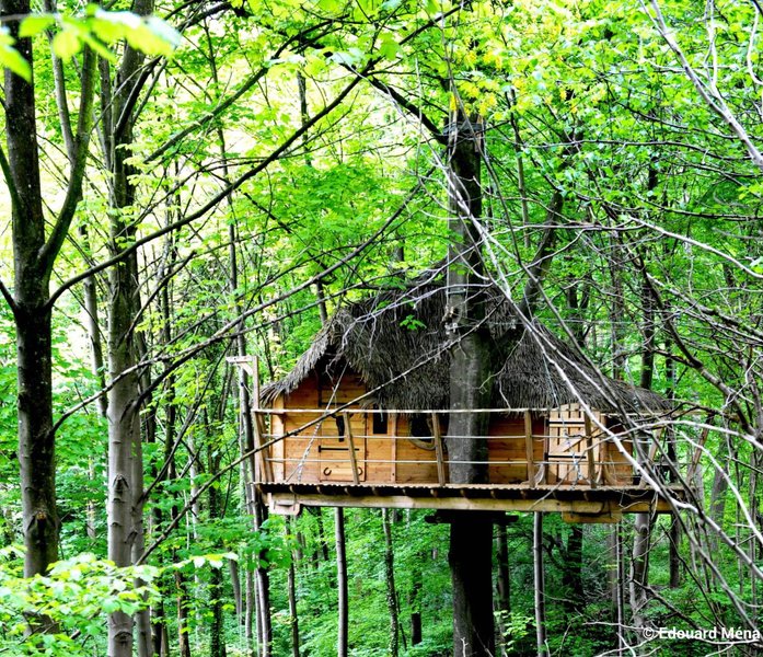 Perched 8m high above the ground, la Cabane du "Grand Hêtre" was the first cabin built in the Fontaine-Chatel's trees. T...
