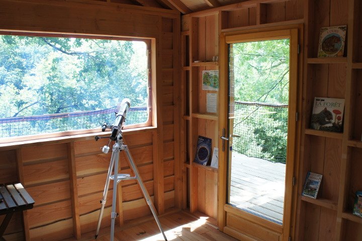La Cabane de la Grande Ourse will appeal to kids and grown ups! It can welcome families from 3 to 5 people. Perched 3m high on stilts, it still gives a real sensation of height as it is located on a 15m edge. Its bear-shaped windows and the library full of books about this emblematic Pyrenees' animal is perfect for a fun stay!