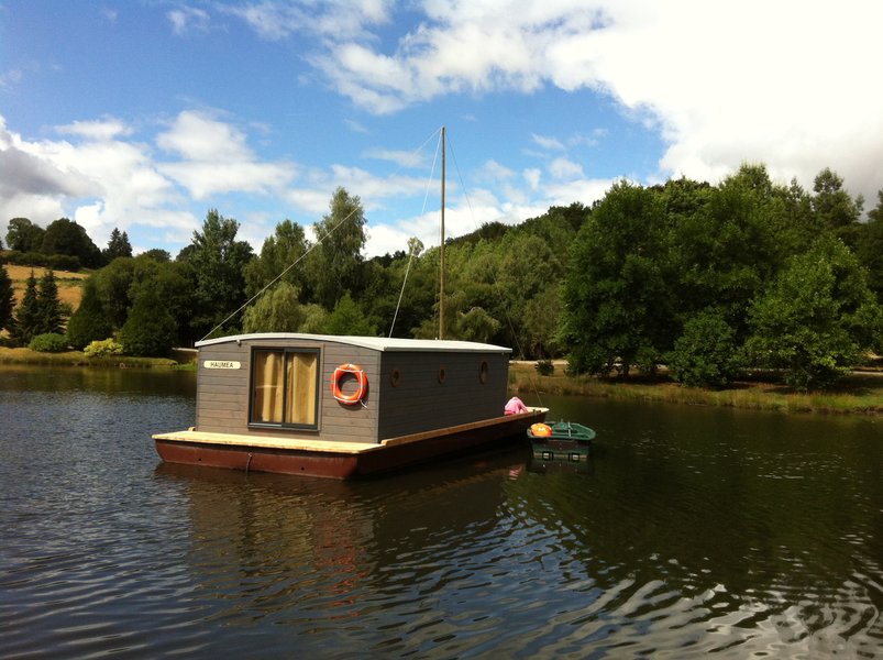 The toue cabanée is right in the middle of the pond and accessible by row boat
