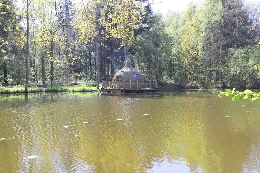 La cabane Tourbillon est équipée de flotteurs, grâce auxquels on peut dériver jusqu’au milieu de l’étang.