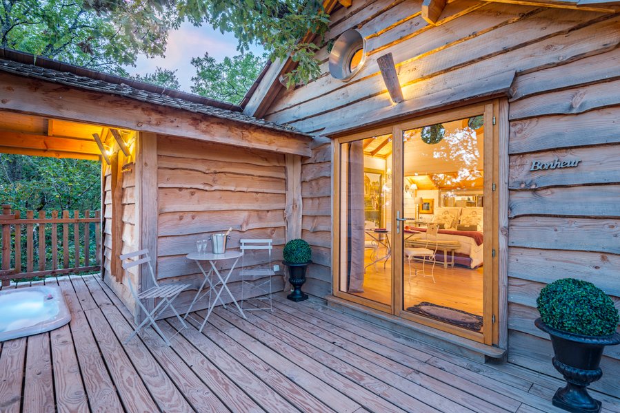 De boomhut spa "Vénitienne" is ideaal om een bezoekje te brengen aan Venetië. Deze comfortabele boomhut in kleurvo...